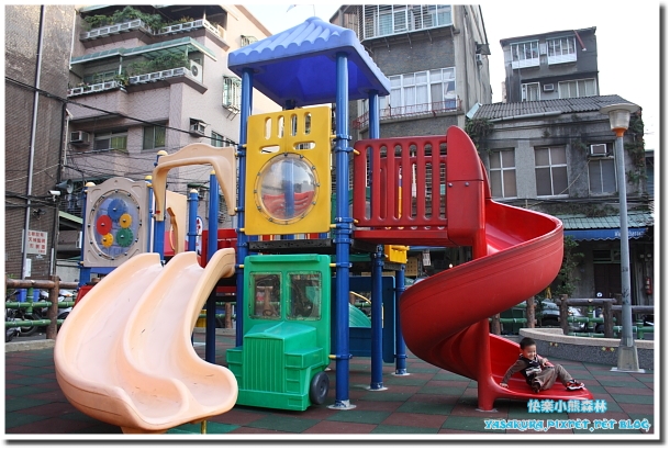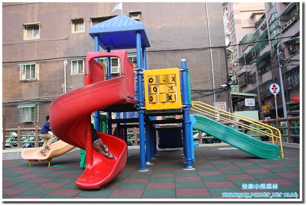 因為他的後面是個小公園,有一個小型的溜滑梯設施。