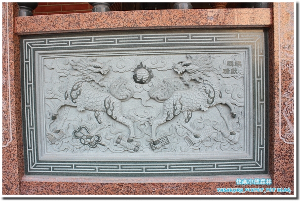 小熊們對後面的麒麟雕刻很感興趣