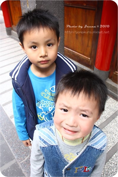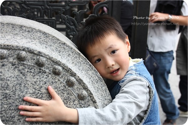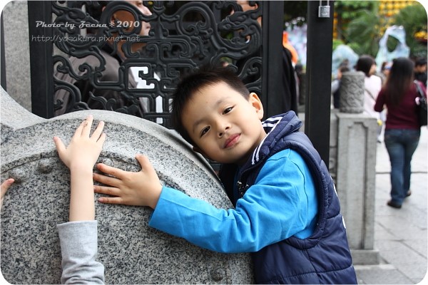 我們排在比較短的這邊,就站著,然後拍照!!不知道全全求了什麼??