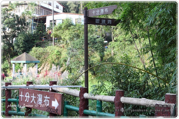 沿著鐵路旁的步道走個10分鐘就來到了十分瀑布的入口。