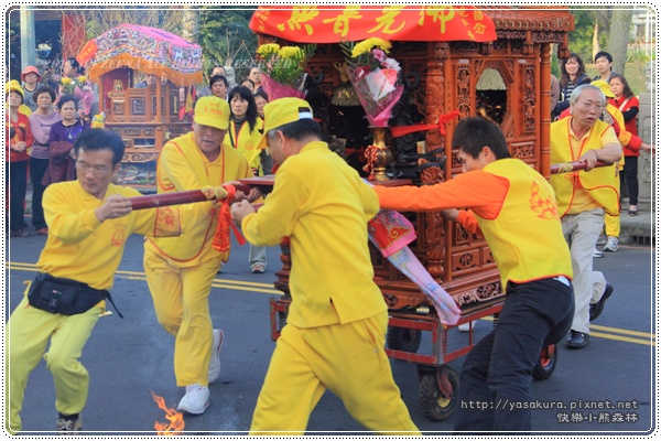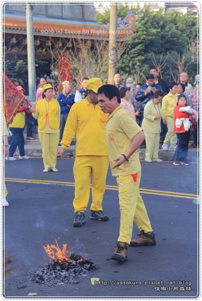 然後是神轎~~沒有抬進廟裡是像這樣衝過火3次後退到一邊去。
