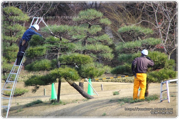 (園藝師父在維護庭園的樹木~~)