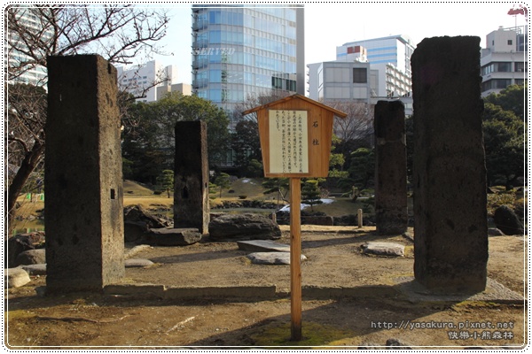 這裏原本是大海,在明歷(1655--1658年)年間填海造地,延寶6年(1678年)成為時任老中(直屬將軍的最高官員)的大久保忠朝的宅邸。
