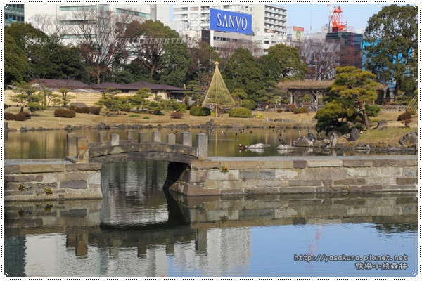 賣與宮內省,翌年明治9年,易名為芝離宮。1923年發生的關東大地震給園內建築物和很多樹木造成極大毀壞,