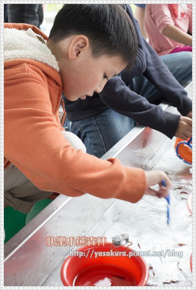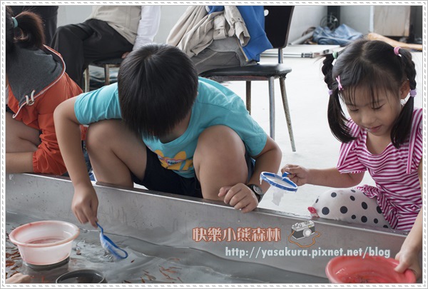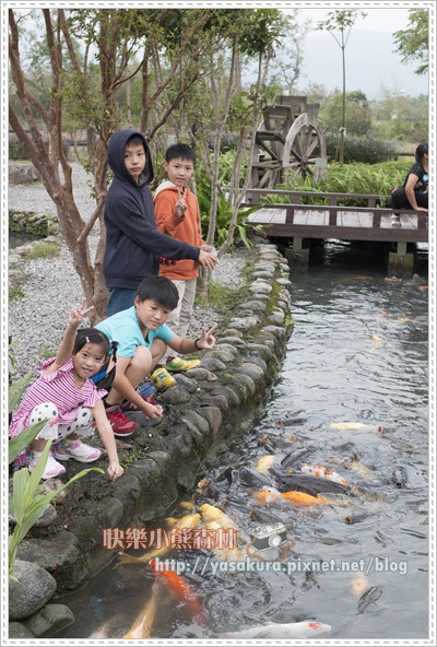 小朋友們一吃完飯就抱著魚飼料跑去餵魚
