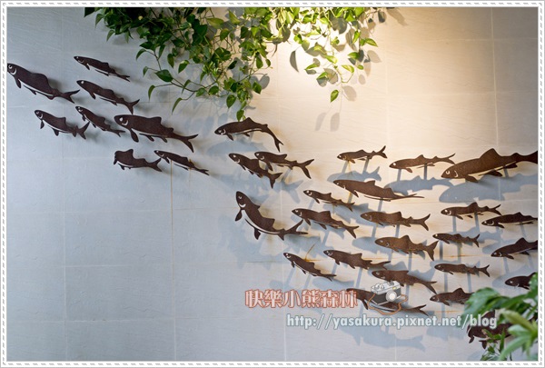 餐廳裡面最吸引目光的就是建在天花板上的水族設計