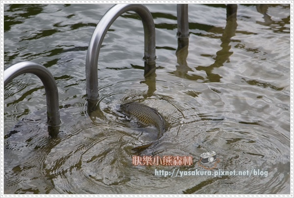 在園內騎了一趟,來到魚池邊餵魚。