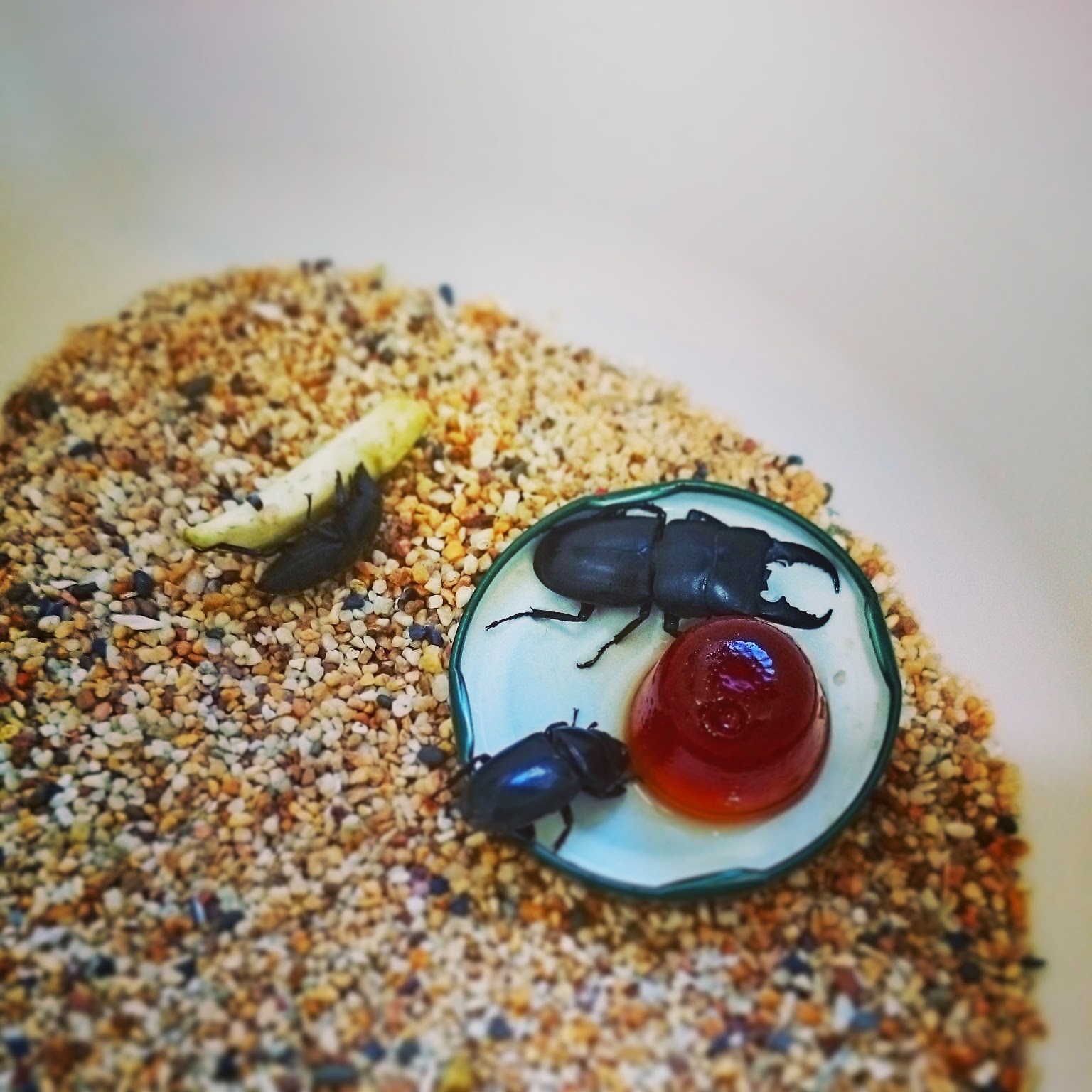 在山上抓到了3隻的鍬形蟲,帶會來給小熊們養。